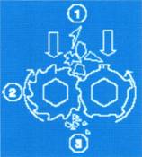2. Solids pass through cutters for size reduction.