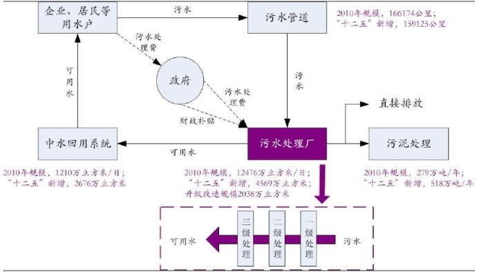 (2) 污水管道從2010年的16億公里上升到31億公里,污水供給量會相應提高,小城鎮(zhèn)污水處理市場抬頭。
